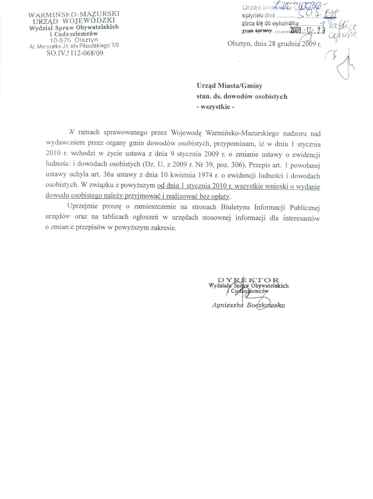 Ogłoszenie w sprawie przyjmowania wniosków na dowody osobiste od 1 stycznia 2010 roku