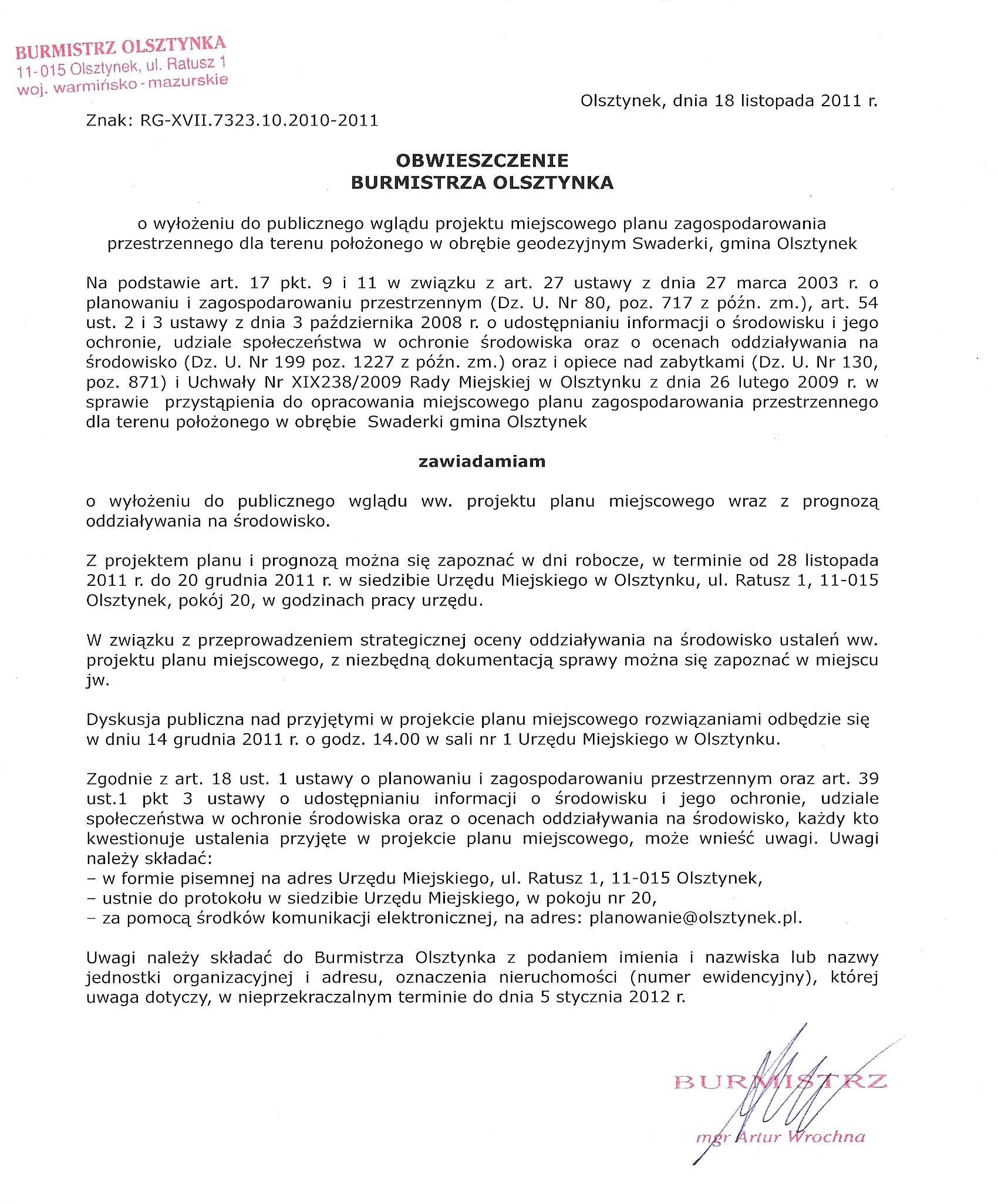 Postanowienie_o_braku_potrzeby_przeprowadzenia_OOS_rozbu_dowa_i_remont_istniejacej_miejskiej_oczyszczalni_sciek_ow_Miasta_Olsztynek_w_Wilkowie.doc