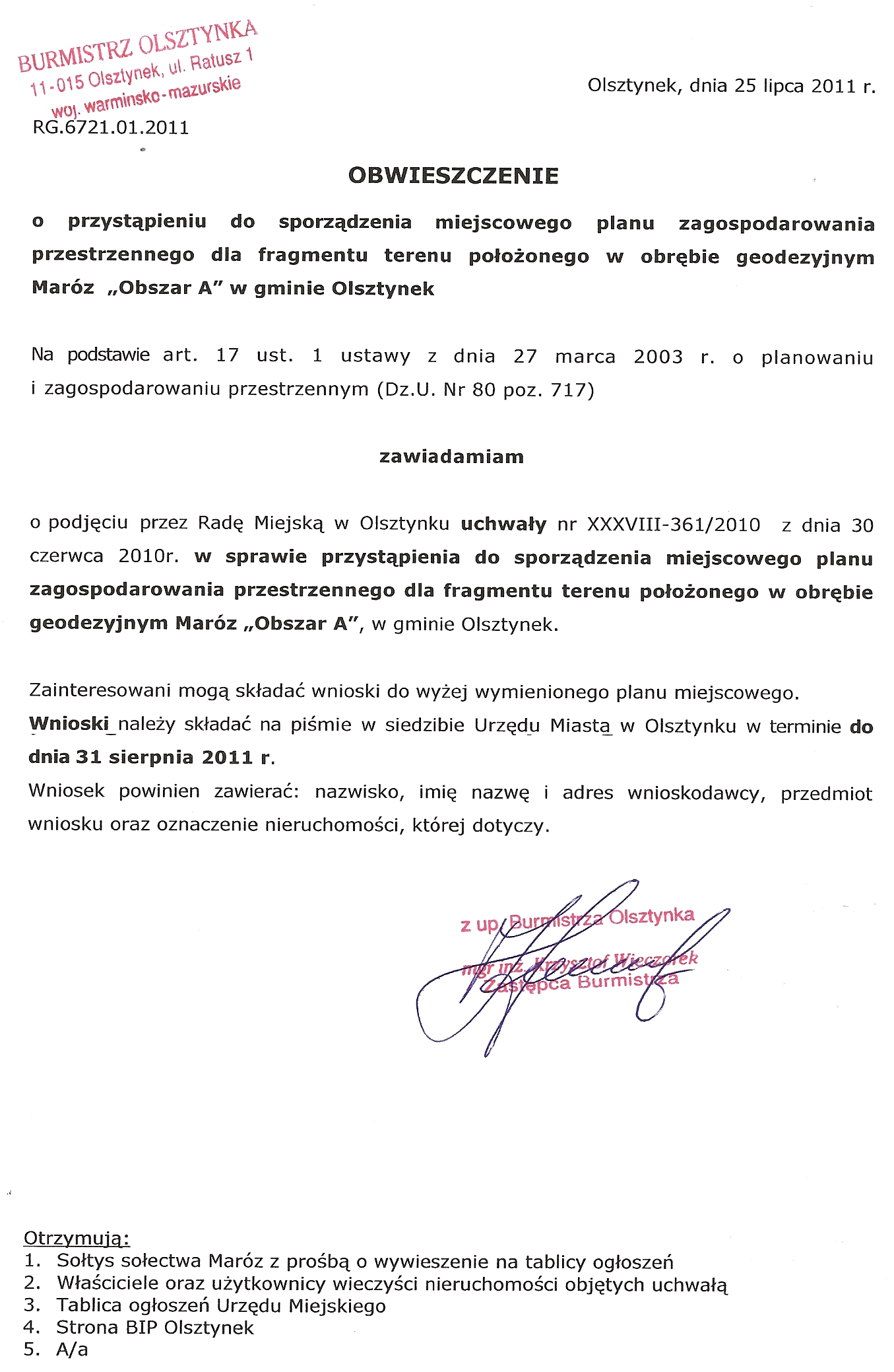 Obwieszczenia Burmistrza Olsztynka