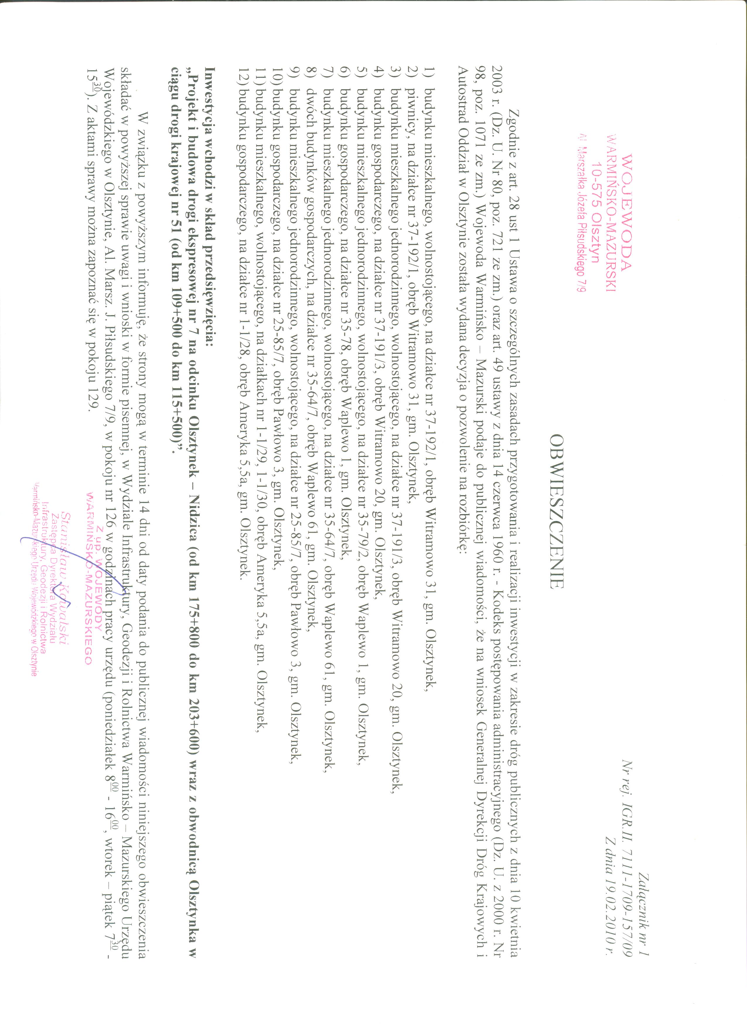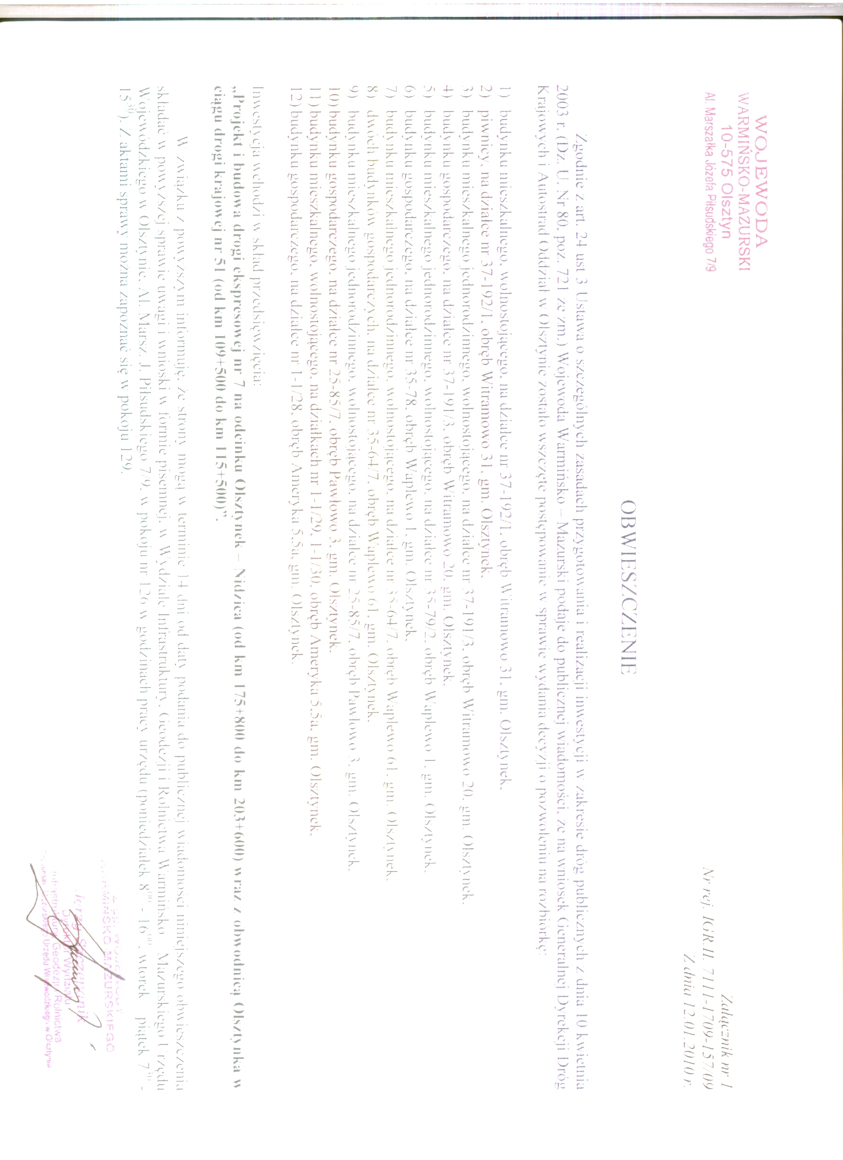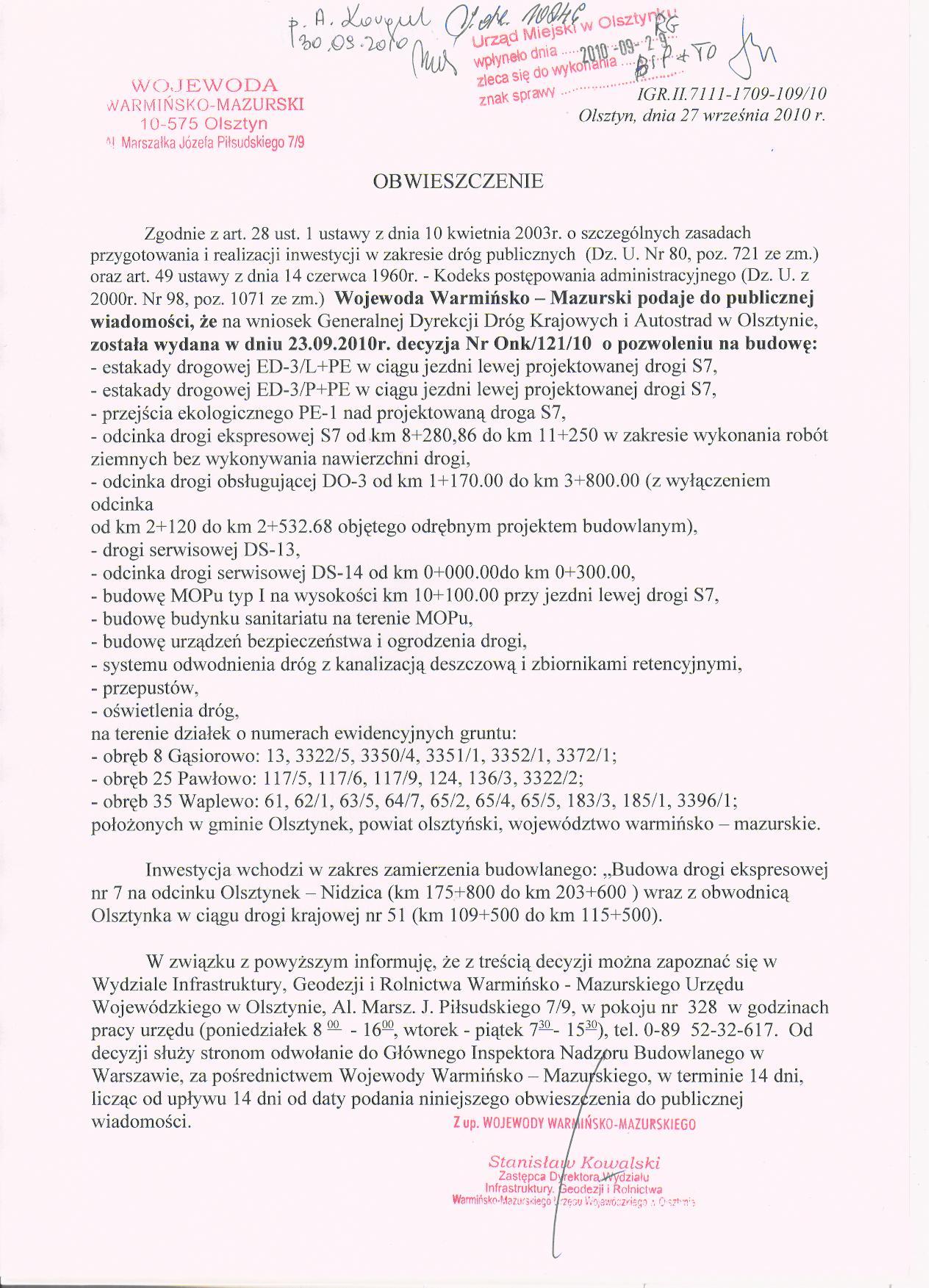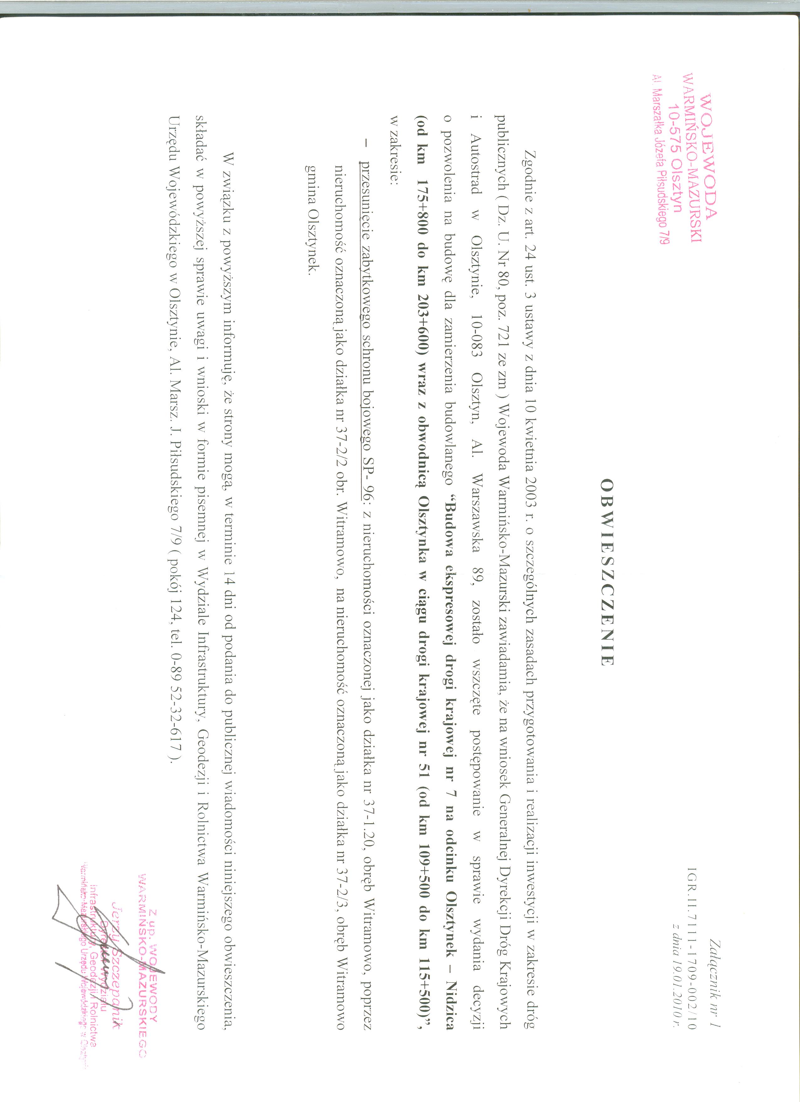 Postanowienie dot. ul. Owocowej w Olsztynku i przeprowadzenia oceny o oddzialywaniu na srodowisko ....doc