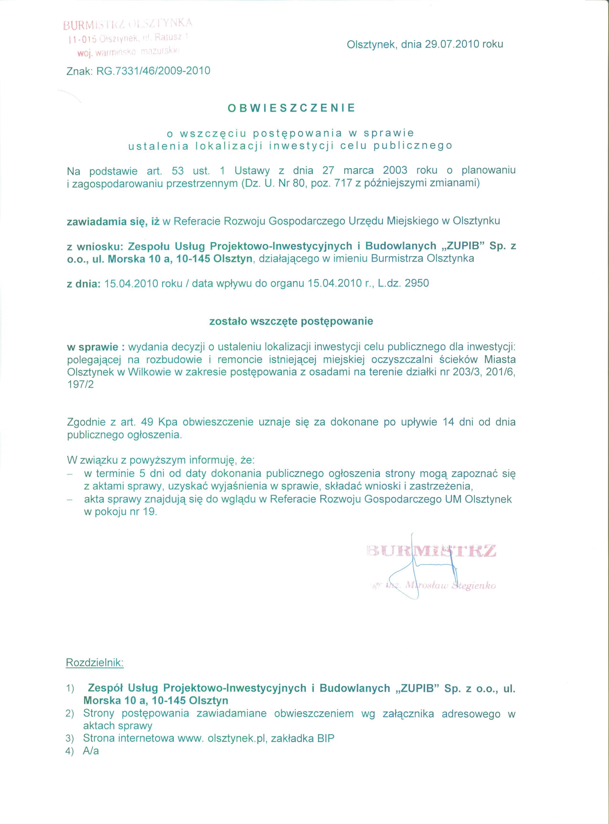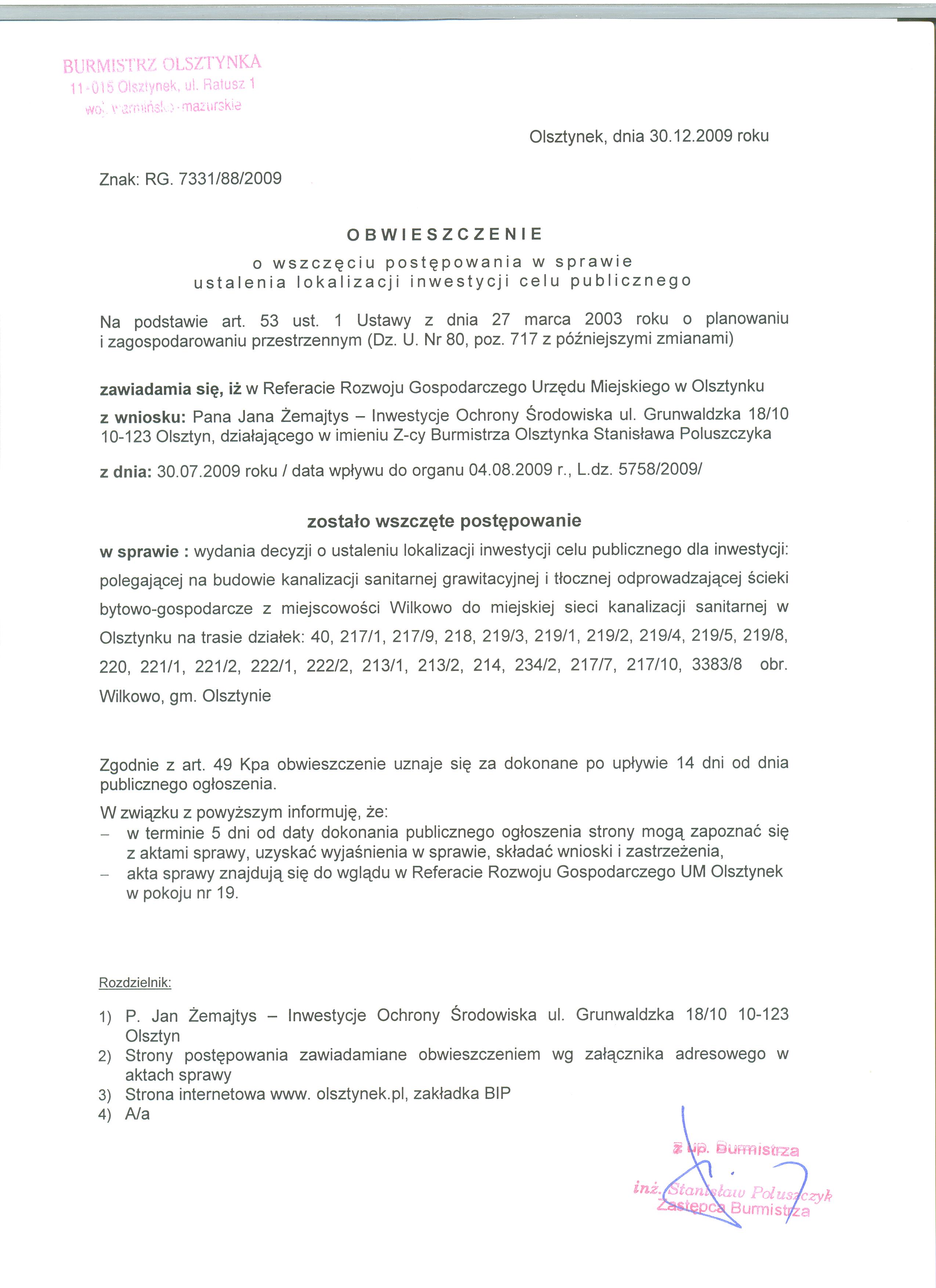 Obwieszczenie z dnia 17.07.2009 r o wszczeciu postepowania .doc